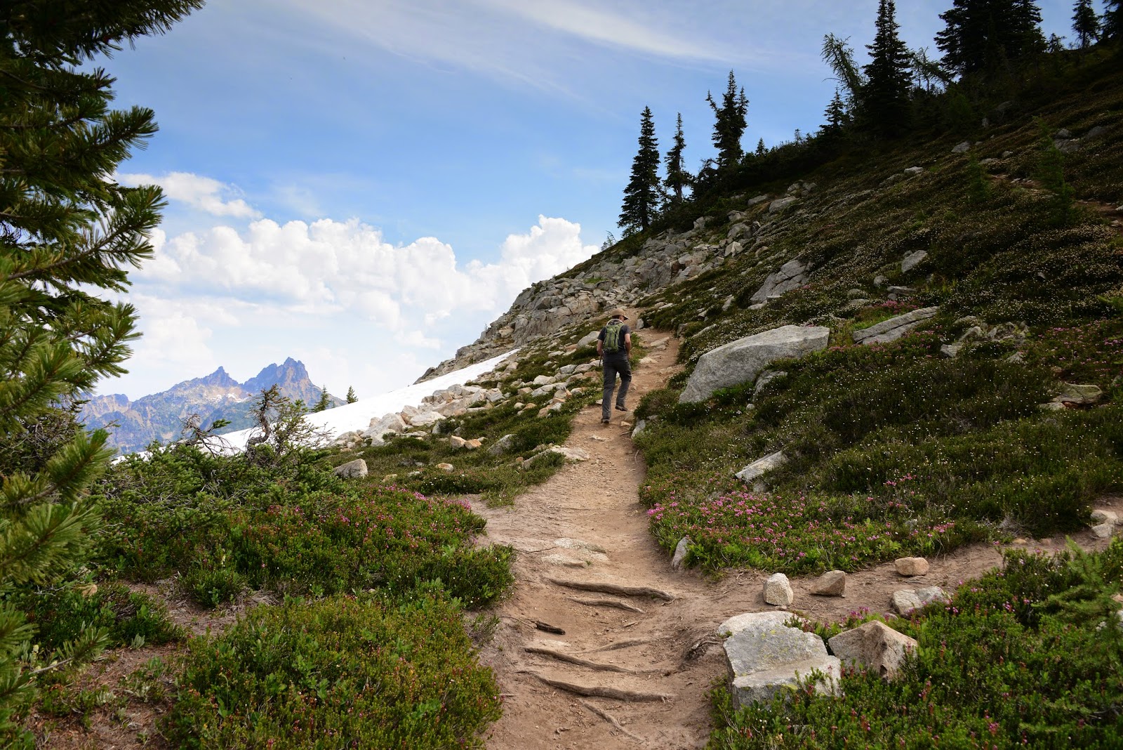 Be prepared for photo overload, just a warning. August 2014.....so long ago, another hiking season has already started. My plan was to hit this trail as early as possible to catch the heather in bloom, life happened and we didn't make it till about the 2nd week of August. Much to my surprise the heather was still blooming and so beautiful. There was still so much smoke in the sky from the fires down in the Methow area that the sky's had a lot of haze in them. It was a nice break from the bare hills and burnt scenery. Starting early on this trail gives you a little bit of time to enjoy the views before the trail starts getting busy. Our plan was to eat lunch at the top over looking the glacier, but the fly's were horrible. Nasty biting things that wouldn't stay off you. So we ate our lunch on the run....well hike. Running is beyond my expertise. Still playing catch up, not feeling completely positive on how that's going to happen. Life is very busy, and doesn't slow down for anyone. Maple Pass is a gorgeous hike, It doesn't matter what season you hike it. There is so many views, mountains, flowers and just the feeling alone of being able to witness the surrounding beauty is incredible.