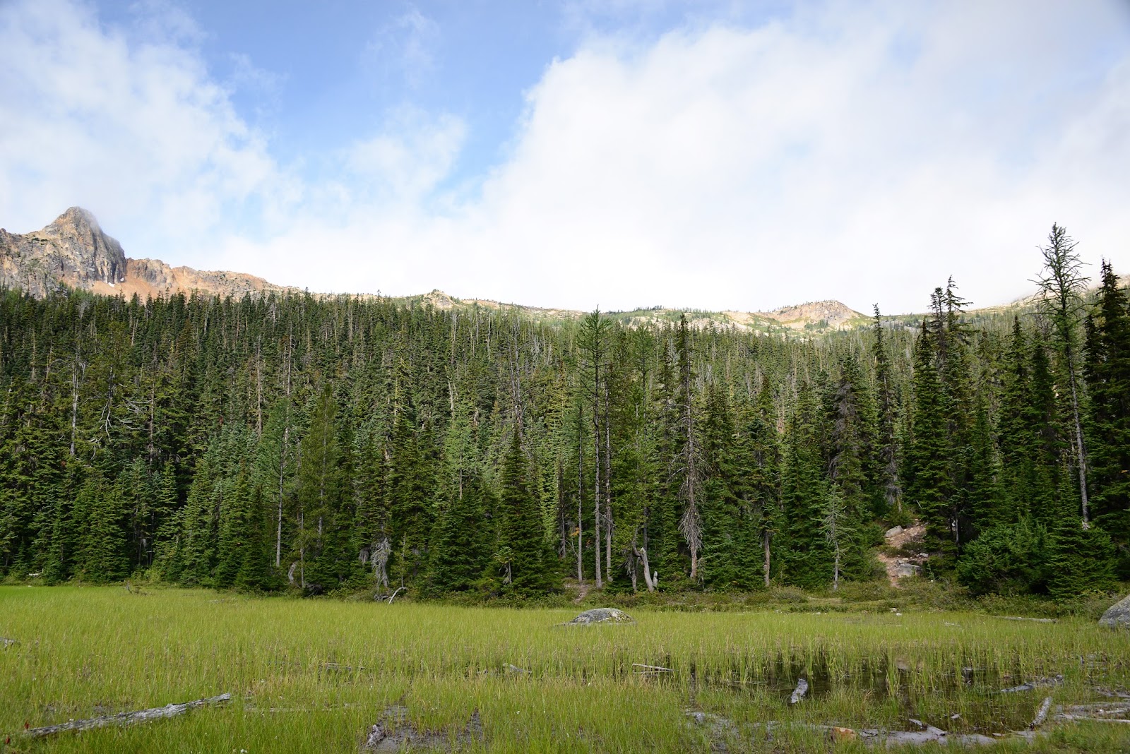Cutthroat Lake Trail is short, 4 miles round trip approximately. Fairly level, but has good views of some mountains with little effort to view them. It is a great place right off the highway to stretch your legs, throw a pole in the water or just enjoy a quick stroll through the forest with lots of openings to view the mountains that surround the lake. There are 2 log bridges you cross to get to the lake, and a trail that continues around the backside. I have hiked this trail a couple of times, especially when I know the weathers going to be bad and I don't want to get soaked, or I am short on time and want to squeeze a quick hike in. This is a very popular trail, so start early if you want to enjoy it with less folks. This trail head will also lead to Cutthroat Pass, then on to the PCT. Just a short post, still working on those 2014 hikes.